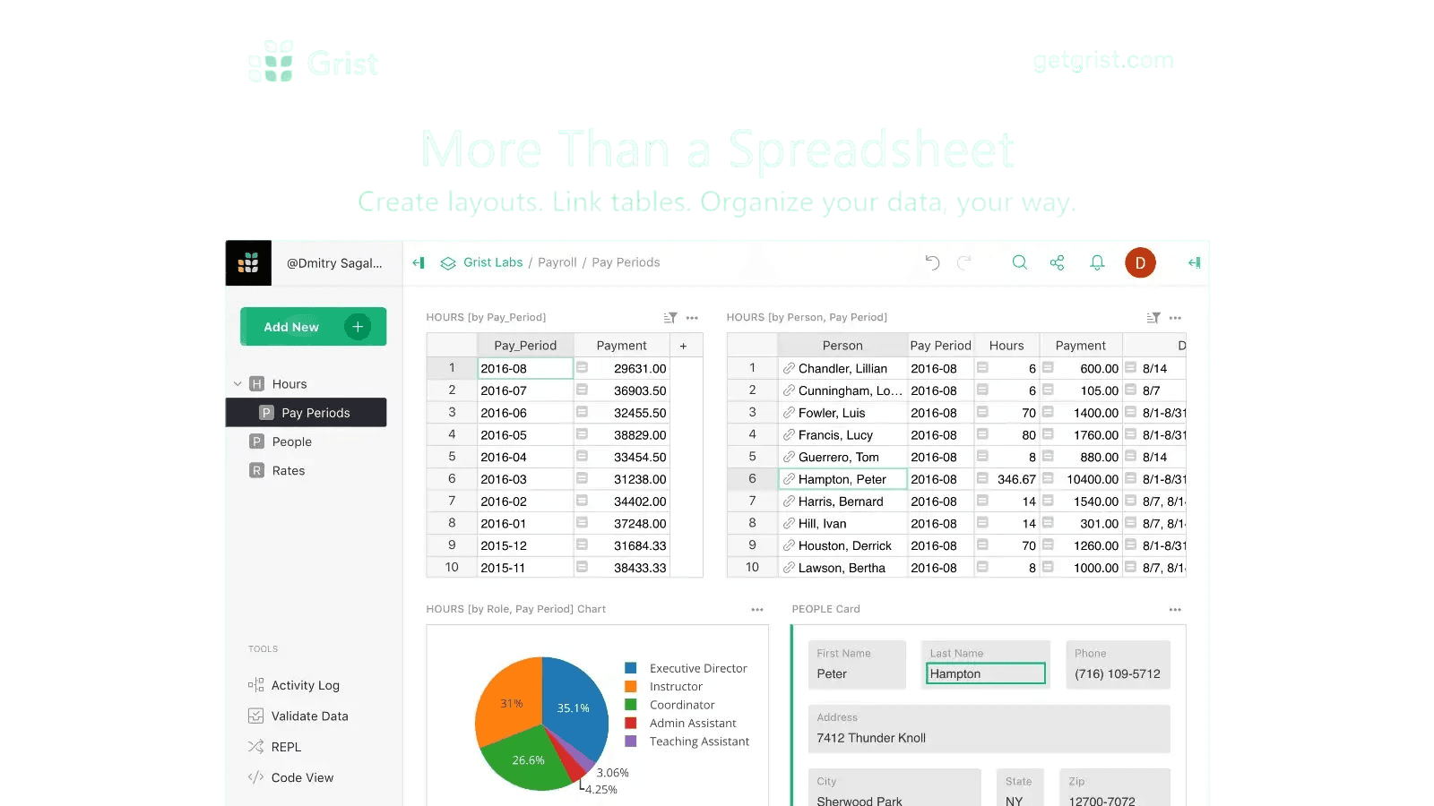 Grist – Open-Source Plattform für Datenmanagement und Projektplanung. Verwalten Sie Tabellen, Dashboards und Workflows sicher auf europäischen Servern.