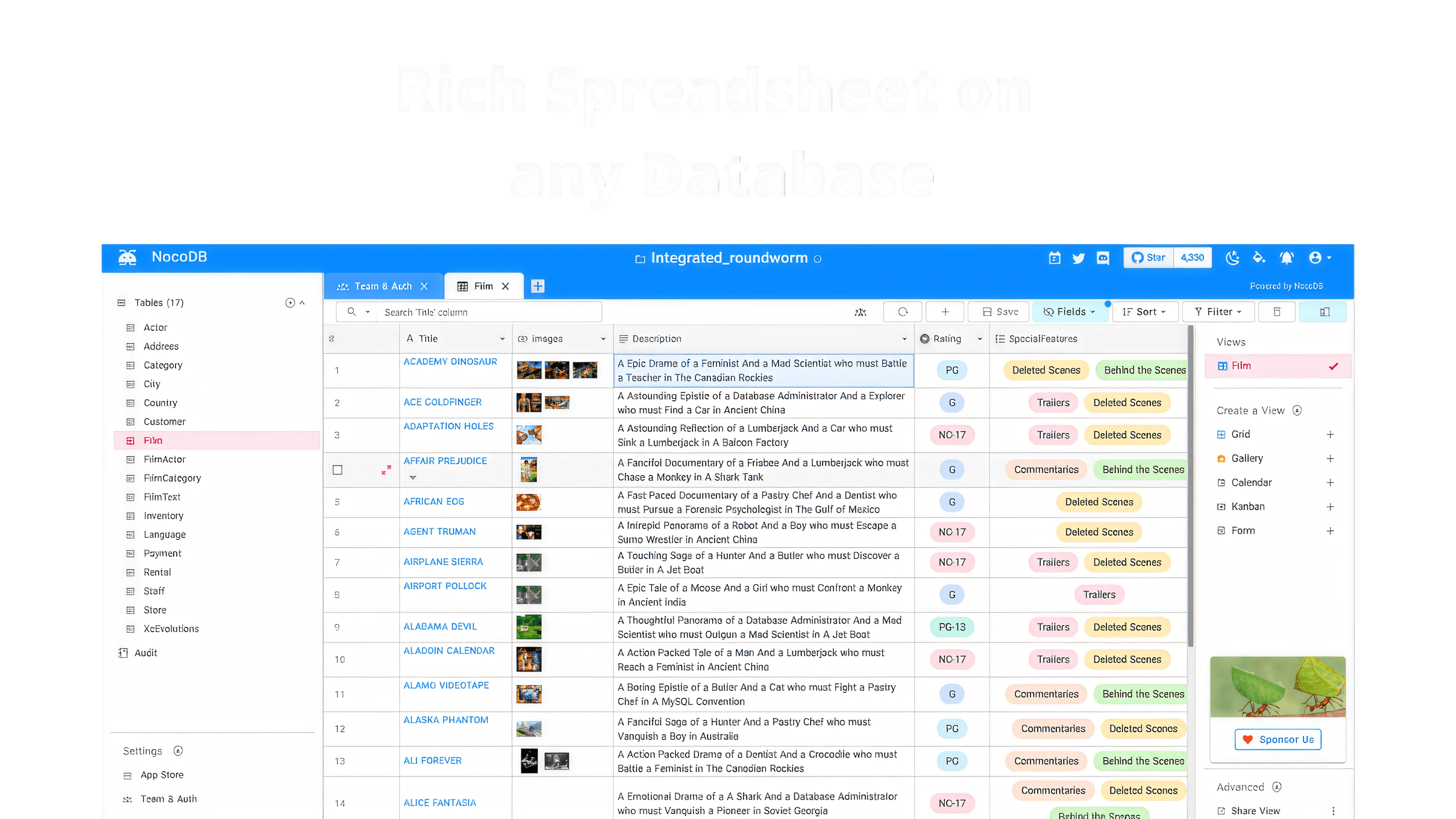 NocoDB – Open-Source No-Code-Datenbankplattform. Verwalten Sie Daten wie in einem Spreadsheet, automatisieren Sie Workflows und behalten Sie volle Kontrolle auf europäischen Servern.